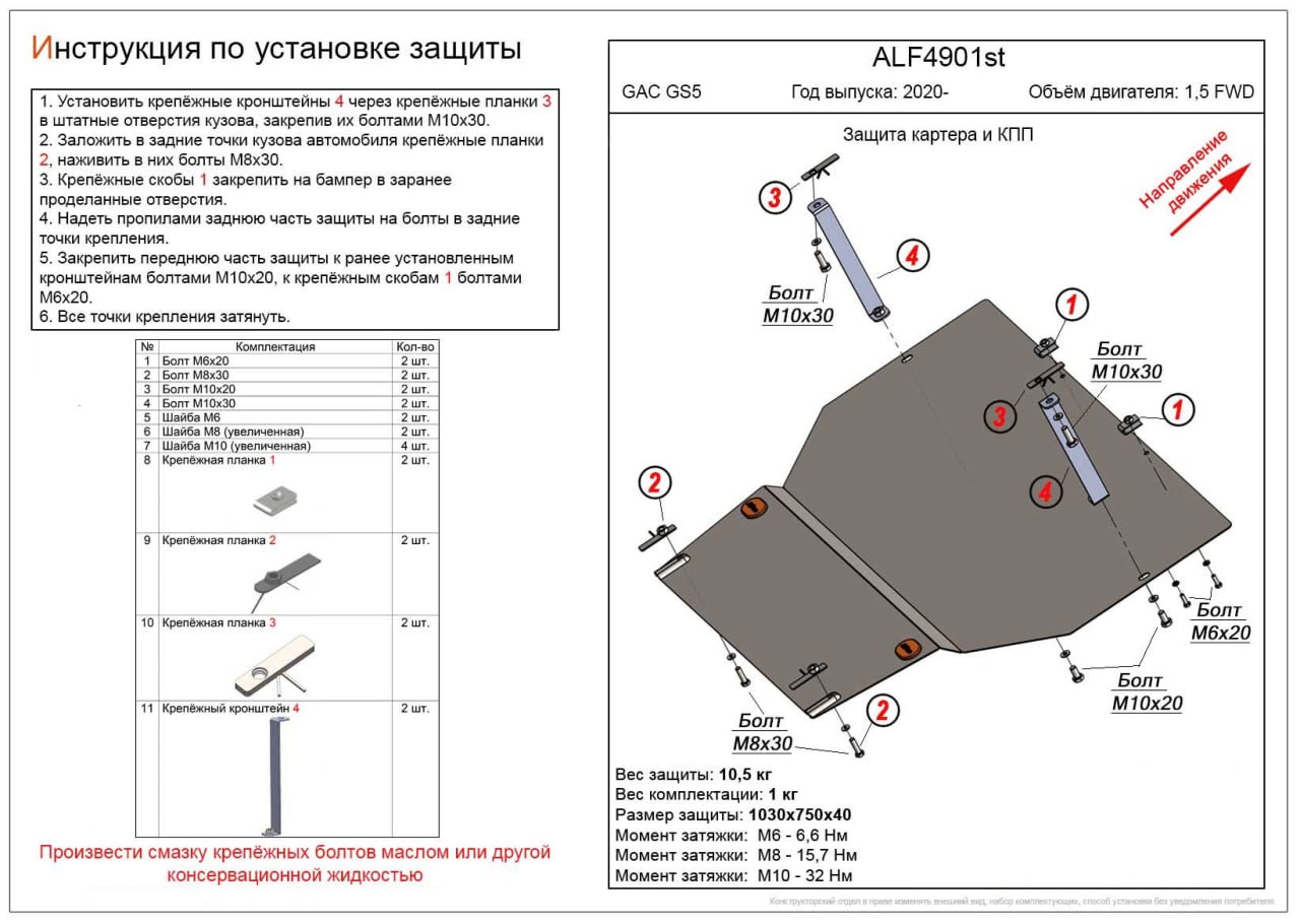 Защита передняя нижняя 60,3 мм для Mitsubishi ASX I