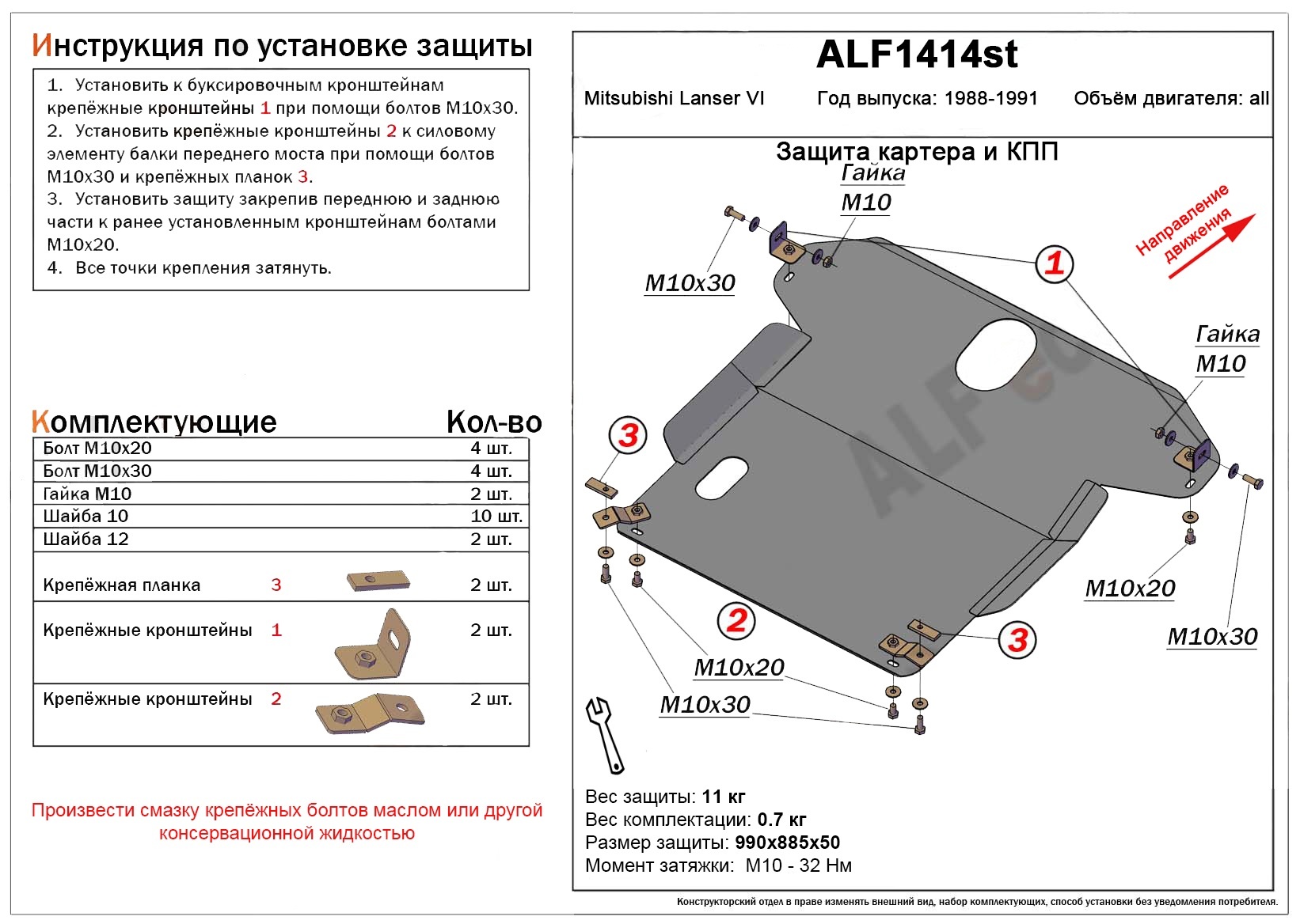 - Характеристики и фото защита картера и кпп для mitsubishi lancer v черный на сайте соответствуют фактическому товару.
