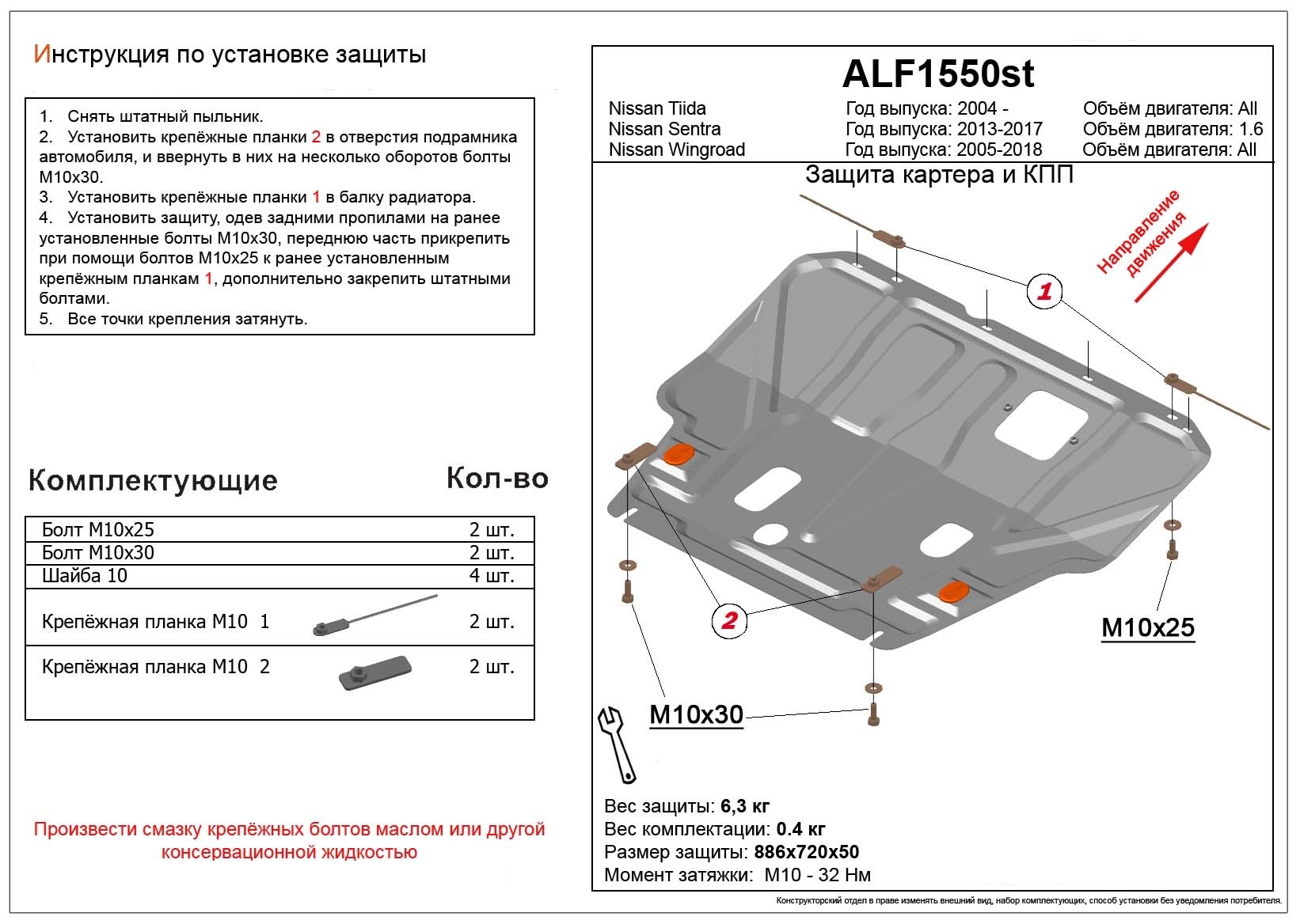- Защита картера и КПП для Nissan Tiida I Черный Alfeco ALF15500ST совместим и проверен на практике — установка без доработок.