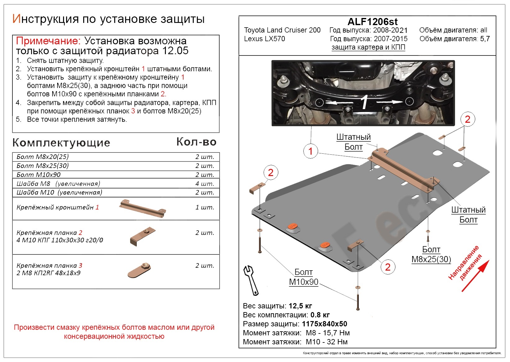 - Защита картера и КПП (установка невозможна без ALF1205st) для Lexus LX III Рестайлинг Черный совместим и проверен на практике — установка без доработок.