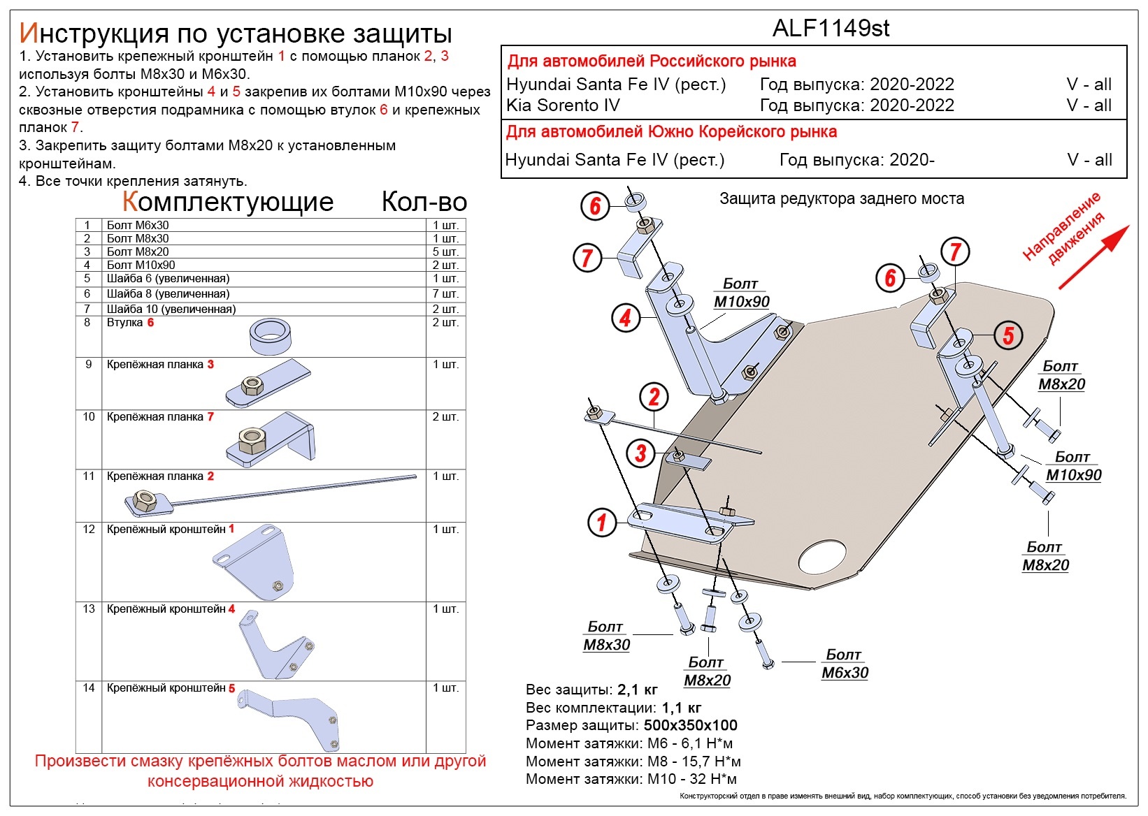 - Предоставляется гарантия на защита редуктора заднего моста для kia sorento iv черный alfeco alf1149st: в случае брака оформим возврат средств в течение 7 дней.