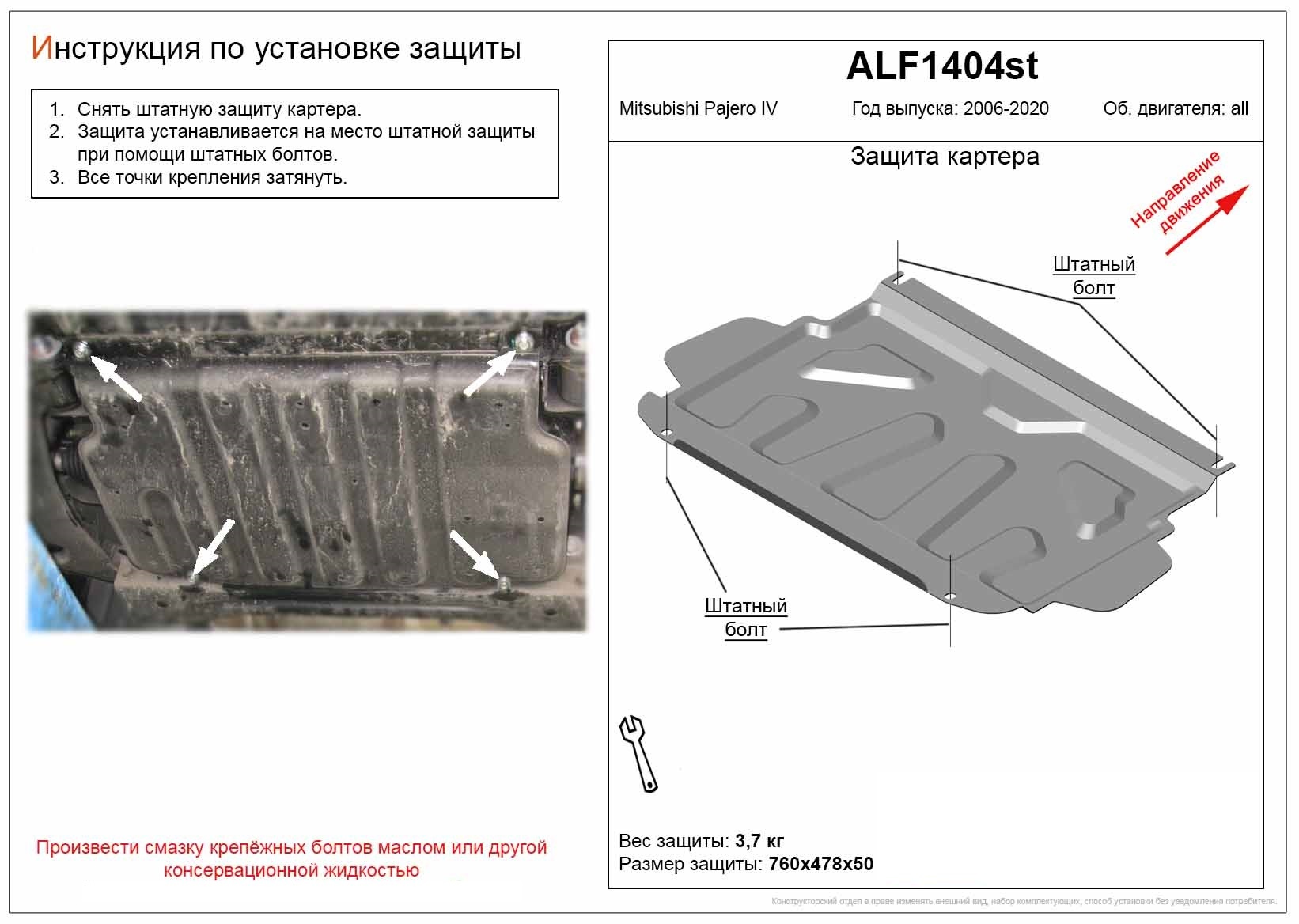 - Характеристики и фото защита картера для mitsubishi pajero iv рестайлинг 1 на сайте соответствуют фактическому товару.