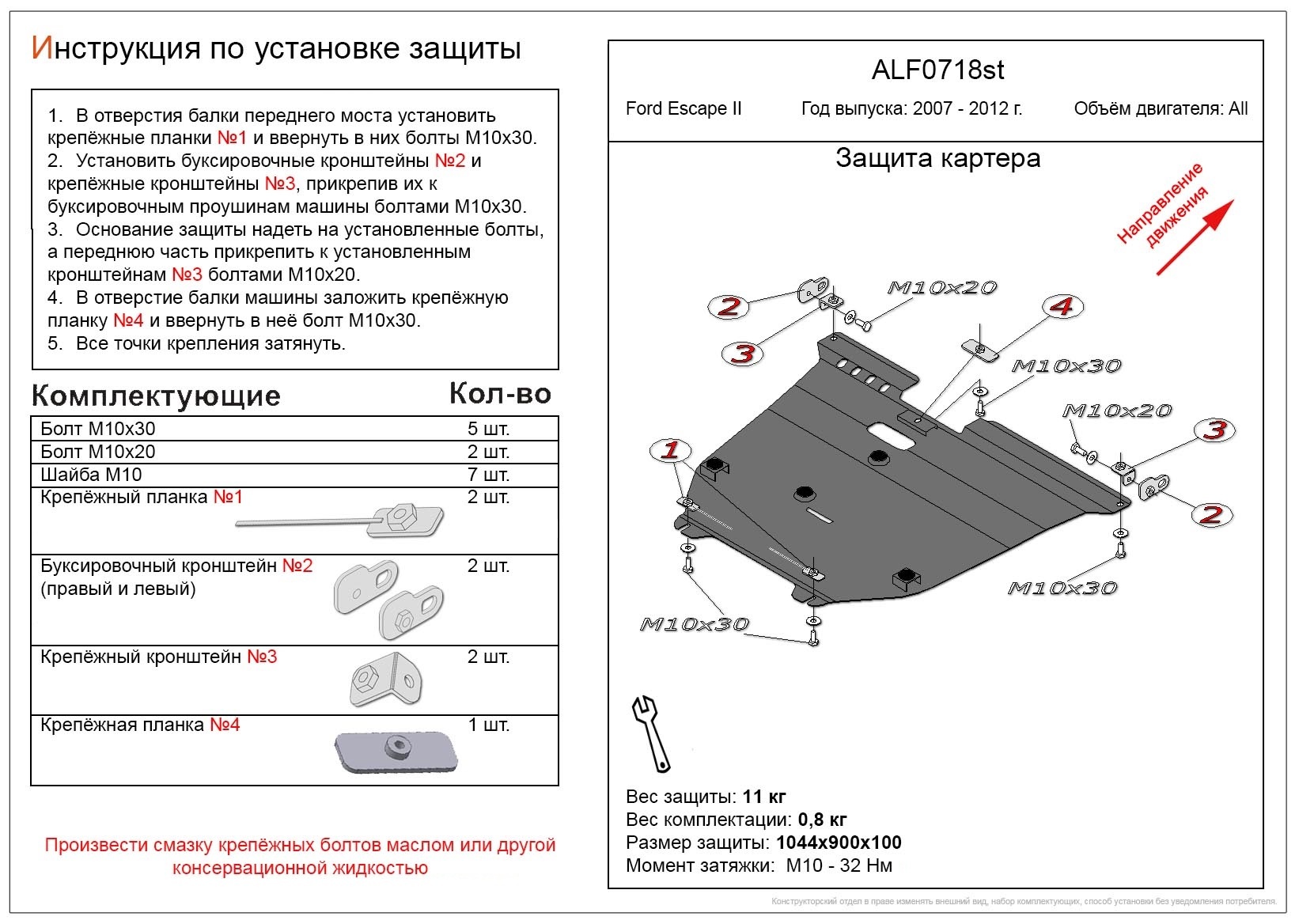 - Защита картера и КПП для Ford Escape II Alfeco ALF0718AL совместим и проверен на практике — установка без доработок.