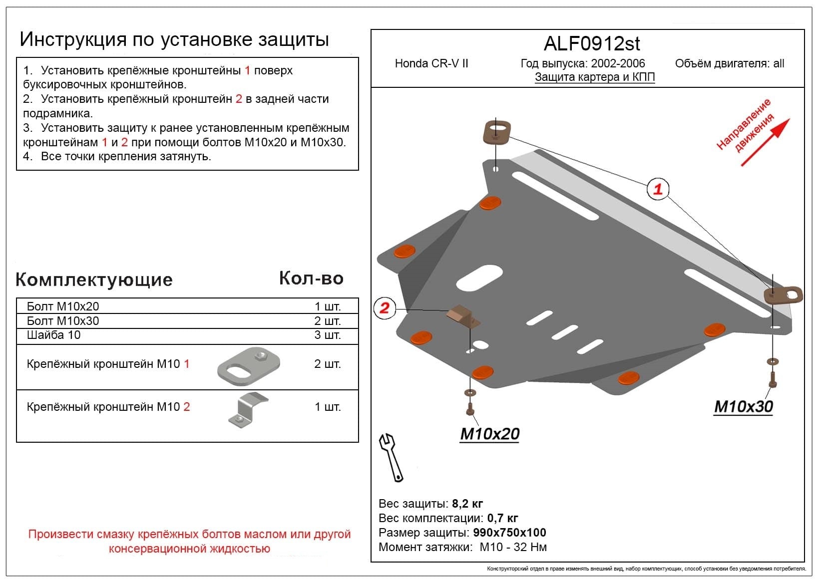 - Защита картера и КПП для Honda CR-V II совместим и проверен на практике — установка без доработок.