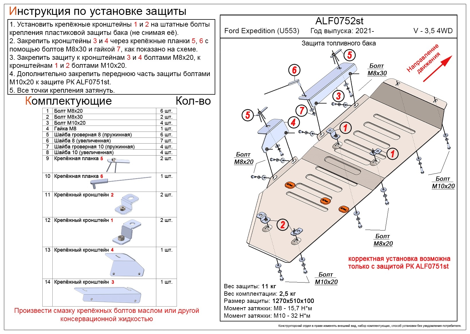 - Защита топливного бака для Ford Expedition IV Рестайлинг Alfeco ALF0752AL совместим и проверен на практике — установка без доработок.