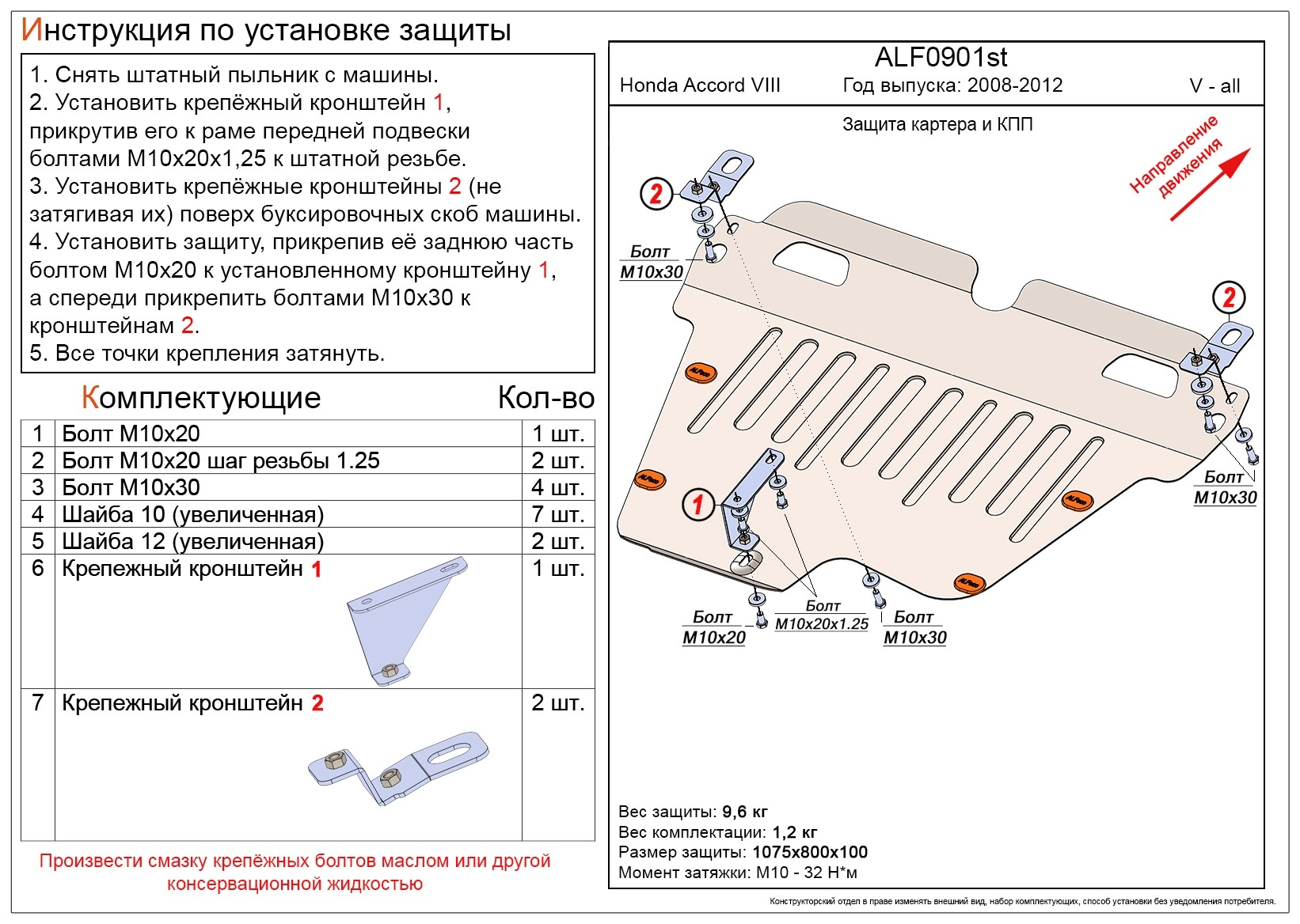- Защита картера и КПП для Honda Accord VIII совместим и проверен на практике — установка без доработок.