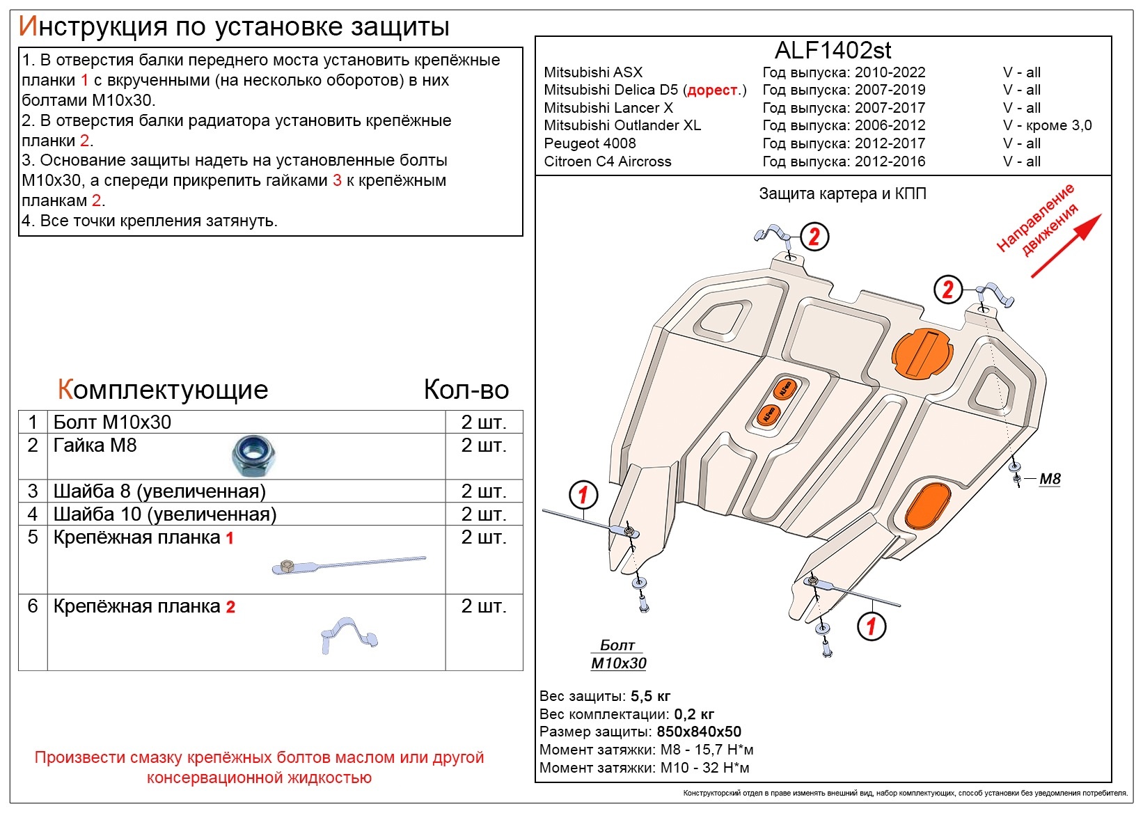 - Защита картера и КПП для Mitsubishi ASX I Рестайлинг 3 совместим и проверен на практике — установка без доработок.